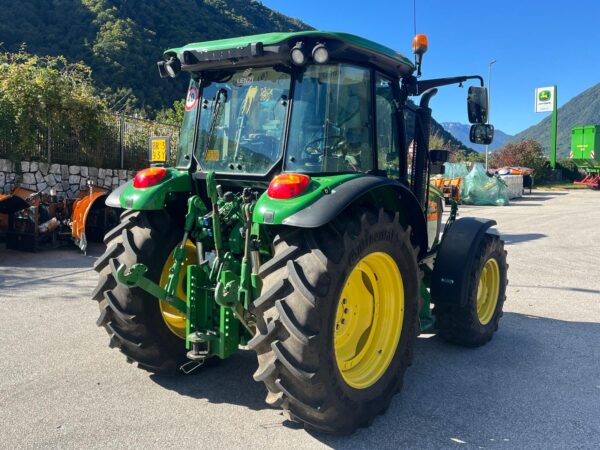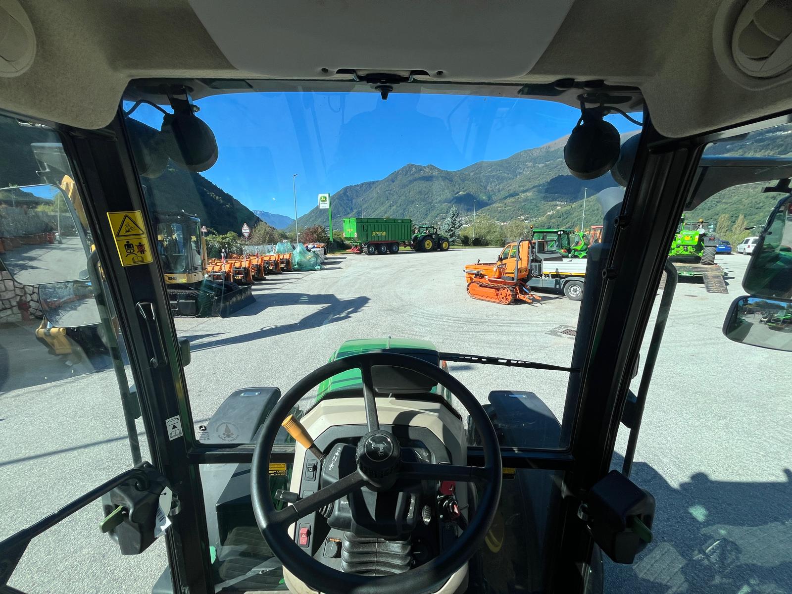 TRATTORE JOHN DEERE 5115M in OTTIMO STATO, ANNO: 2018, ORE DI LAVORO: 1800, motore JOHN DEERE a 4 cilindri , 4525cil. da 115cv, trasmissione PowrQuad™ Plus 16F/16R, frenatura idraulica, 3 distributori idraulici a doppio effetto, comandi esterni posteriori per azionamento PTO, Cabina confortevole ed equipaggiata Sedile operatore pneumatico Grammer, Doppio sedile passeggero, Radio e A/C, Gommatura anteriore 380/70R24, posteriore: 480/70 R34, impianto lama da neve completo di piastra + 2 prese idrauliche a doppio effetto e prese elettrica.